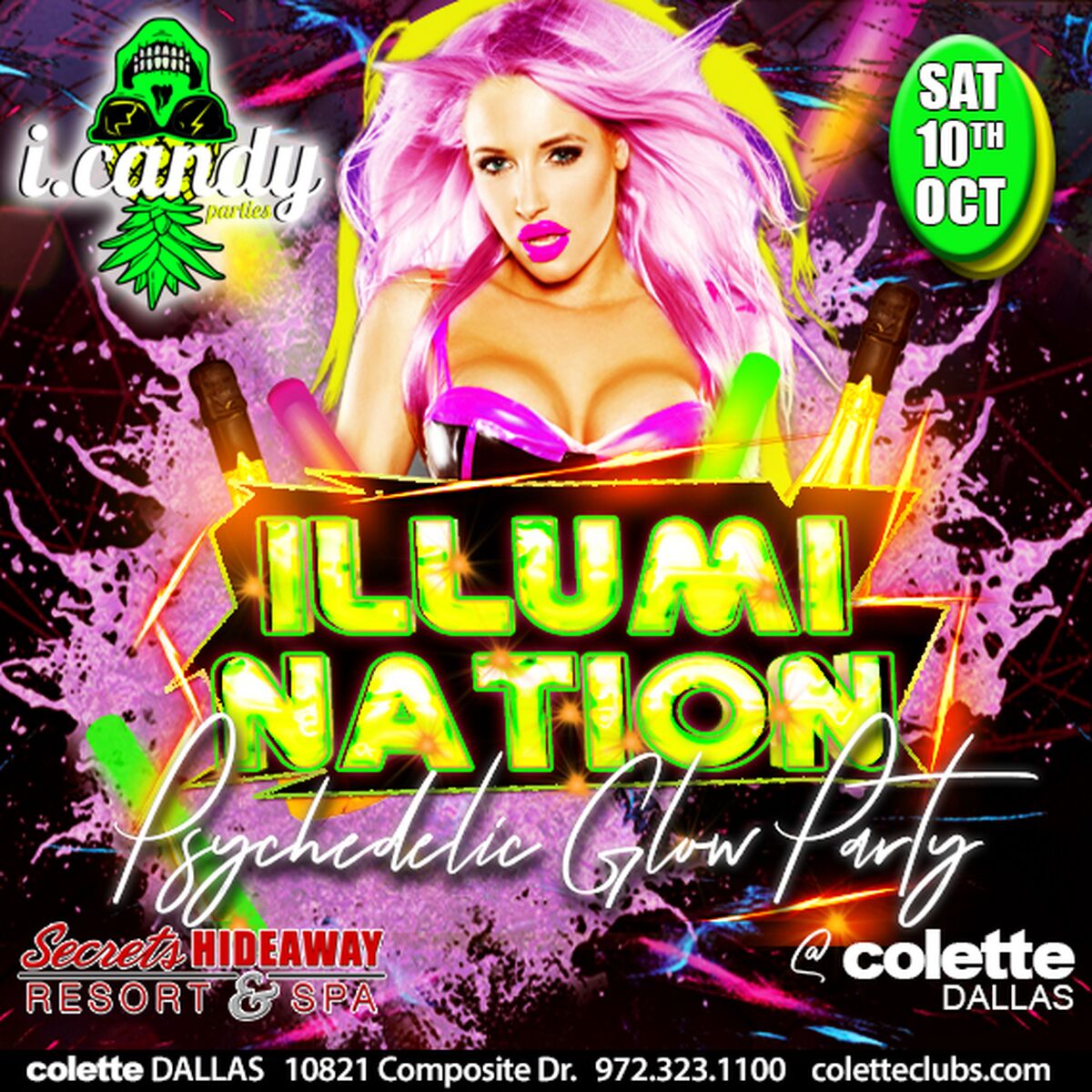 The event you've all been waiting for! ILLUMINATION 2020 @ Colette Dallas, October 10th @ 9:00 PM. Host hotel is sold out but you can still book rooms at the overflow hotel La Quinta on i-35 & Walnut Rd. Dallas, TX. Tickets are still available for this event. Don't miss this ILLUMINATION GLOW PARTY!CLICK HERE FOR TICKETS